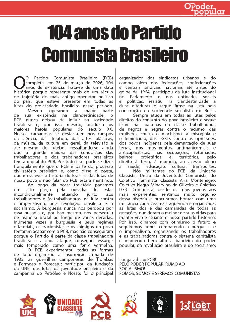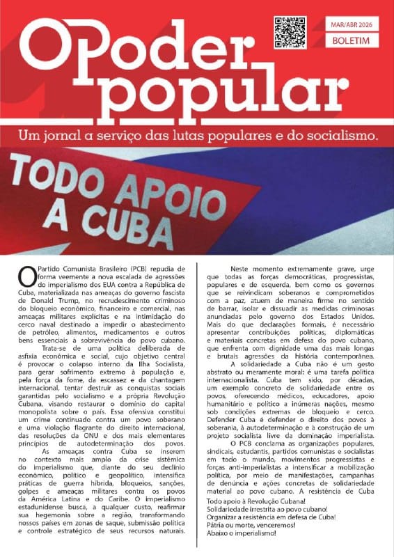 brasil 17 de Março de 2026 Boletim Poder Popular Março/Abril 2026 Por: O Poder Popular · 17 de Março de 2026 · BOLETIM OPP MAR ABR 26 - Versão PDFBOLETIM OPP MAR ABR 26.pdf337 KBdownload-circle💡Acompanhe todas as mídias do nosso jornal: https://linktr.ee/jornalopoderpopular e contribua pelo Pix jornalopoderpopular@gmail.com Compartilhe nas redes sociais whatsapp Facebook twitter Menu Editoriais Destaques Brasil Internacional Economia Cultura Esporte Juventude Opinião O Jornal Linha Editorial Edições Impressas