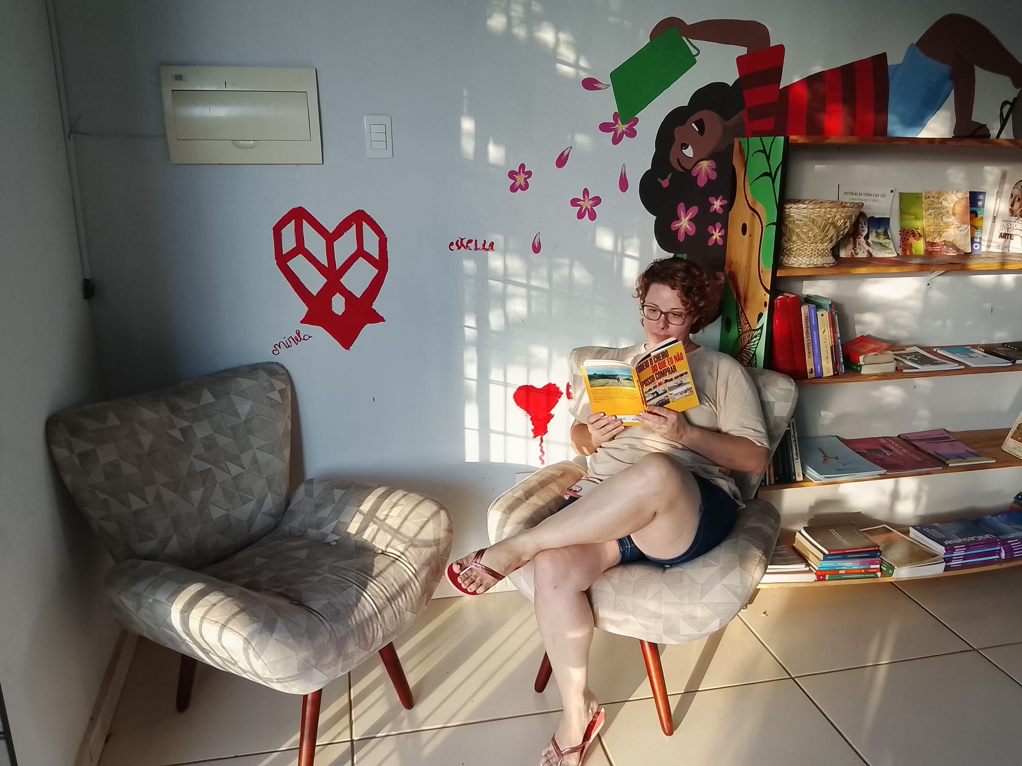 Um dia, ao levar a filha para a escola e passar em frente a uma sala comercial, decidiu que aquele poderia ser o lugar: “Passei aqui na frente e disse: aqui vai ser a biblioteca. Ninguém acreditava”, lembra, rindo. “Mas no mesmo dia fui na imobiliária.”
